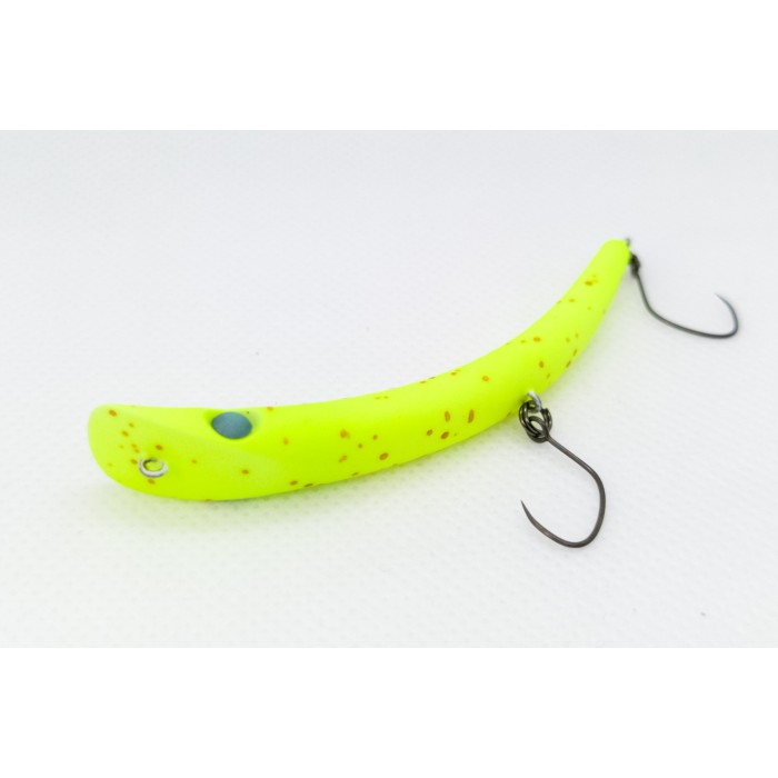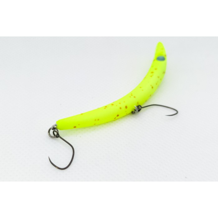Крупный тонущий бананас применяется там же, где и его 50мм собрат, но тогда, когда рыба желает атаковать огромные приманки. Канарейка - очень яркий светонакопительный окрас. Соответсвует агрессивному поведению рыбы в мутной воде или при плохом освещении