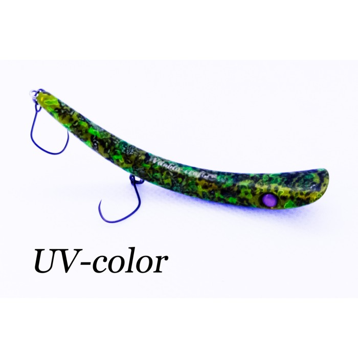 Крупный тонущий бананас применяется там же, где и его 50мм собрат, но тогда, когда рыба желает атаковать огромные приманки. Цвет-обманка. Вид сильно оличается при обычном свете и в УФ.