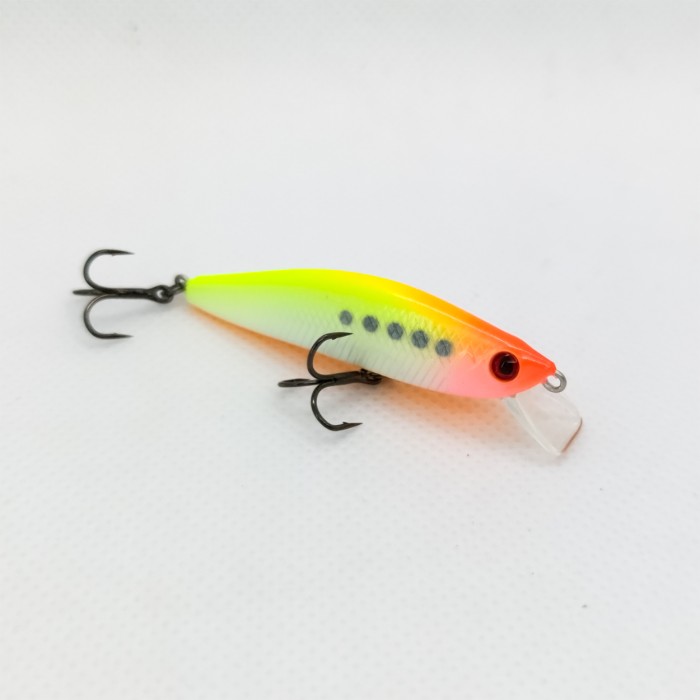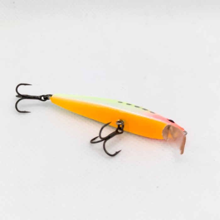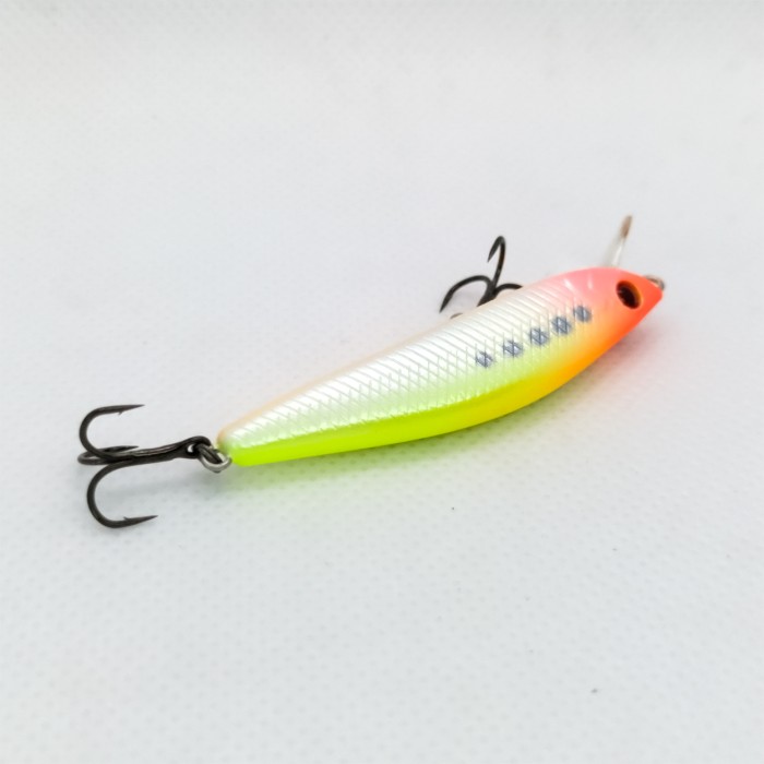 Тротил - воблер, созданный специально для ловли пелагического хищника на море. Благодаря уникальному сочетанию формы тела и формы лопаты он стабильно и разнообразно играет на всех типах рывковых проводок. Отлично сыпется "в натяг" и "в потяг", что позволяет эффективно использовать воблер в стиле stop&twich. Тяжёлый (для своего объёма) и хорошо сбалансированный - поэтому дальнобойный. Держит скоростную проводку, а значит и течение. Идёт не глубоко, до метра. В течении 4х лет показал себя одним из лучших на море. Целевая рыба - на саргана, луфаря, ставриду и жереха. При этом отлично справляется с ловлей ласкиря, скорпены, горбыля и смариды. Качество покрытия рассчитано на острые зубы, твёрдые камни, калёные крючки - способен пережить сезон луфарёвой рыбалки без потерь в окрасе. Лопата сложной формы, которую нельзя повторить при обычной технологии изготовления воблеров, такой игры нет больше ни у кого. Воблер очень "живой"