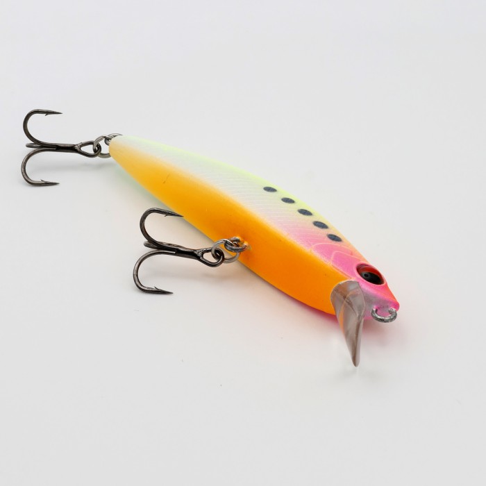 Тротил - воблер, созданный специально для ловли пелагического хищника на море. Благодаря уникальному сочетанию формы тела и формы лопаты он стабильно и разнообразно играет на всех типах рывковых проводок. Отлично сыпется "в натяг" и "в потяг", что позволяет эффективно использовать воблер в стиле stop&twich. Тяжёлый (для своего объёма) и хорошо сбалансированный - поэтому дальнобойный. Держит скоростную проводку, а значит и течение. Идёт не глубоко, до метра. В течении 4х лет показал себя одним из лучших на море. Целевая рыба - на саргана, луфаря, ставриду и жереха. При этом отлично справляется с ловлей ласкиря, скорпены, горбыля и смариды. Качество покрытия рассчитано на острые зубы, твёрдые камни, калёные крючки - способен пережить сезон луфарёвой рыбалки без потерь в окрасе. Лопата сложной формы, которую нельзя повторить при обычной технологии изготовления воблеров, такой игры нет больше ни у кого. Воблер очень "живой"