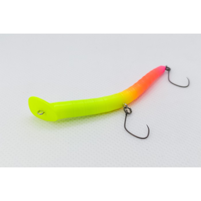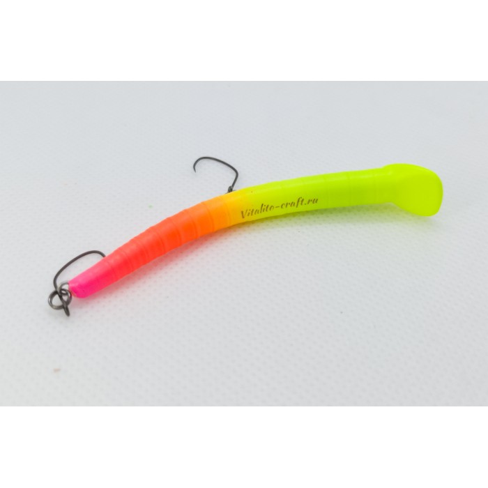 Vitalito ASSA 68s - дальнейшее развитие мысли о вытянутых "противо-воблерах". Биологическая внешность этого воблера выражает его живую идею ассиметричной формы. Тело изогнуто в двух осях таким образом, чтобы не спорить с основной для этого типа приманок игрой. Но оно добавляет в движения специфичную асимметрию, свойственной для всех движений живых существ. И асимметрия эта меняется при изменении скорости проводки, что делает игру на комбинации потяжек разной интенсивности очень разнообразной. К тому же с таким телом приманка более не тонет как брошенный в воду топор, а норовит выйти на спираль, уйти вбок. А будучи придержана лесой "в натяг" при падении ещё и меняет это свойство. Ассу можно анимировать и на погружении.