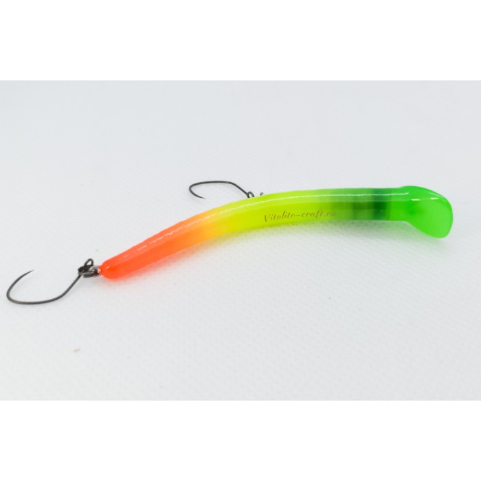 Vitalito ASSA 68s - дальнейшее развитие мысли о вытянутых "противо-воблерах". Биологическая внешность этого воблера выражает его живую идею ассиметричной формы. Тело изогнуто в двух осях таким образом, чтобы не спорить с основной для этого типа приманок игрой. Но оно добавляет в движения специфичную асимметрию, свойственной для всех движений живых существ. И асимметрия эта меняется при изменении скорости проводки, что делает игру на комбинации потяжек разной интенсивности очень разнообразной. К тому же с таким телом приманка более не тонет как брошенный в воду топор, а норовит выйти на спираль, уйти вбок. А будучи придержана лесой "в натяг" при падении ещё и меняет это свойство. Ассу можно анимировать и на погружении.